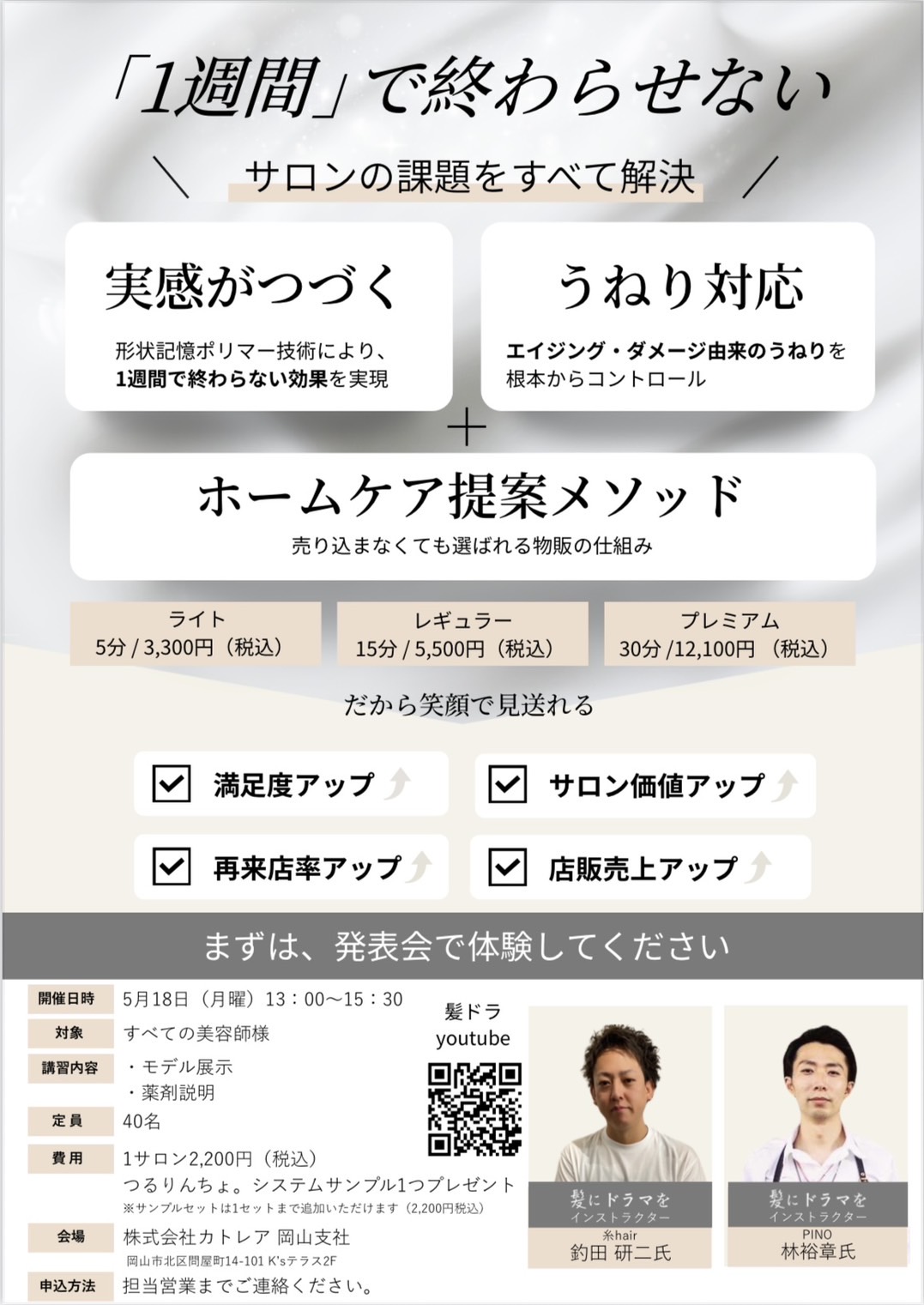 当日はモデル展示・薬剤解説も行い、実際の仕上がりと技術を間近でご体感いただけます。