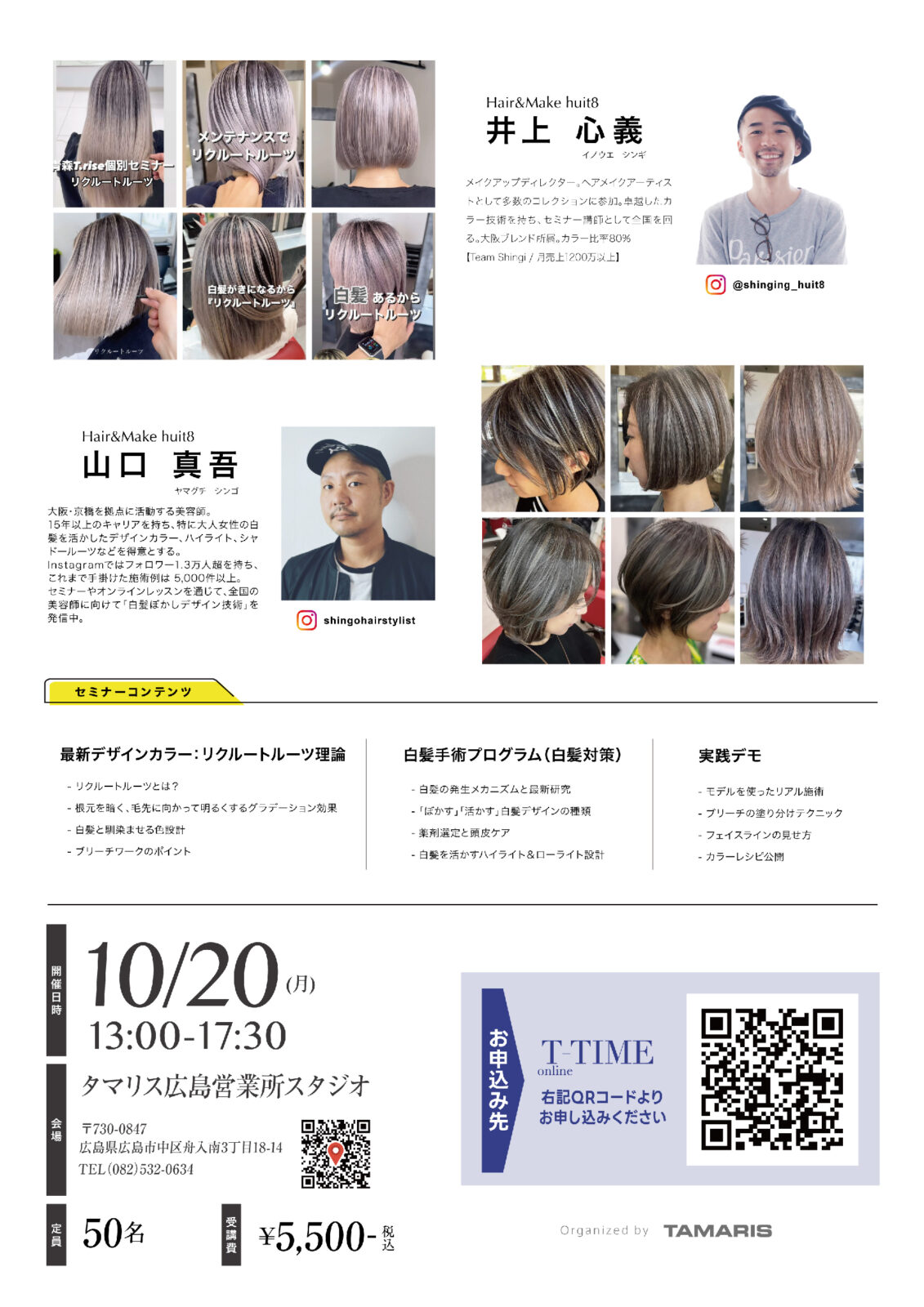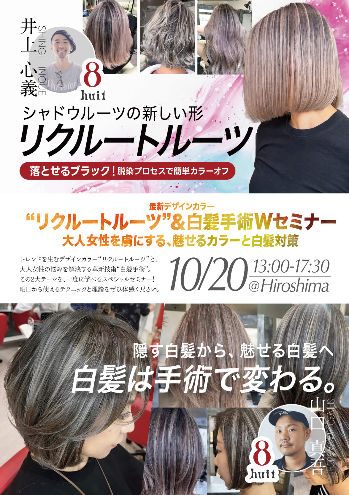 トレンドを生み出す最新デザインカラー「リクルートルーツ」と、大人女性の悩みを解決する革新的技術「白髪手術」。この2つを一度に学べる特別なセミナーです。